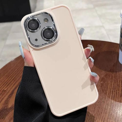 Caja de Teléfono para iPhone 13 con Marco de Lente Galvanizada y Película de Lente (Rosa Claro)