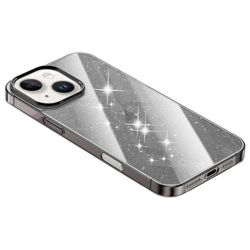 Caja de teléfono híbrida para iPhone 13 de vidrio con brillo para PC galvanizada (Negro)