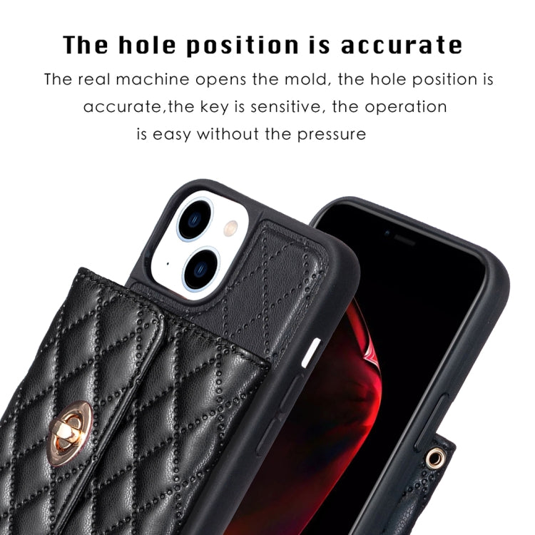 Cartera para iPhone 13 Rombal Caja de Teléfono Cuero con Hebilla de Metal Horizontal (Negro)