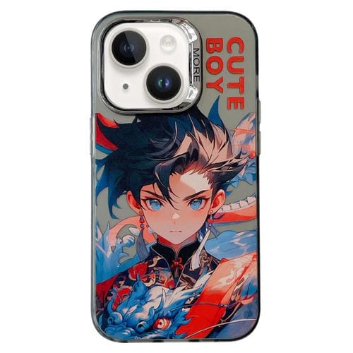 Funda para iPhone 13 Blue Eyed Boy Estilo Antiguo Chino Anillo de Lente Electrochapado PC Hybrid TPU