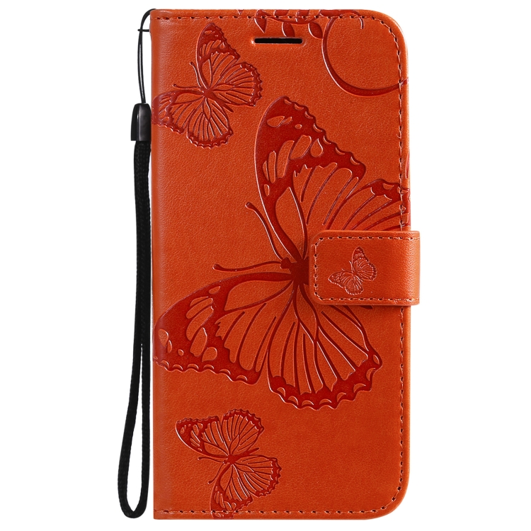 Estuche de Cuero para iPhone 13 con Tapa Horizontal Patrón Mariposa 3D Soporte Ranura Tarjeta Billetera Cordón (Naranja)