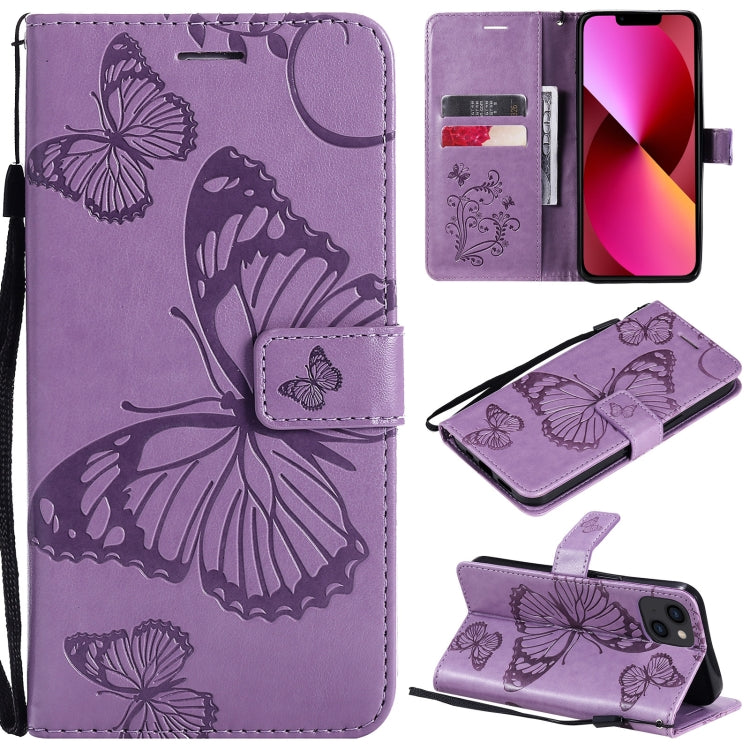 Estuche de Cuero para iPhone 13 con Tapa Horizontal Patrón Mariposa 3D Soporte Ranura Tarjeta Billetera Cordón (Púrpura)