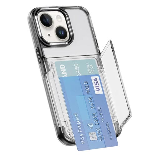 Estuche para Teléfono TPU Híbrido Acrílico con Tarjetero para iPhone 13 (Negro Transparente)