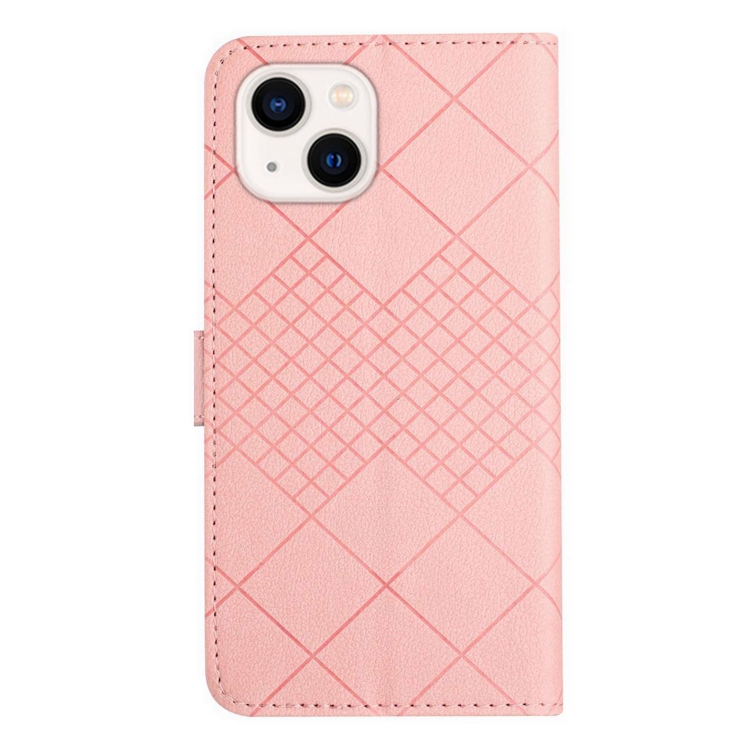 Funda de cuero para iPhone 13 con textura de rejilla rómbica (Rosa)