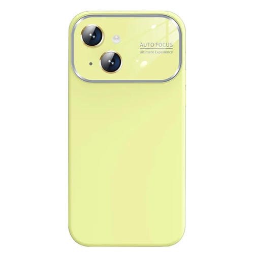 Funda de teléfono para iPhone 13 con ventana de vidrio grande de silicona líquida (Amarillo)