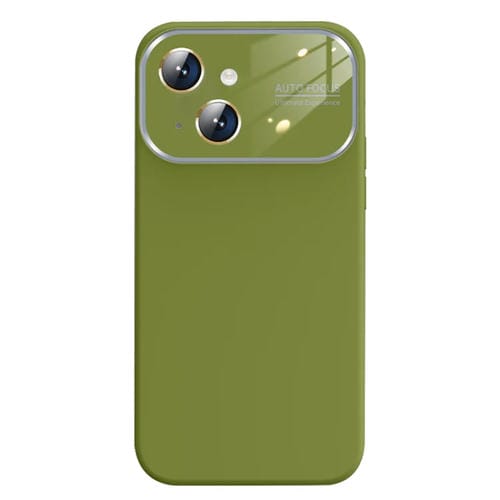Funda de Teléfono para iPhone 13 con Ventana de Vidrio Grande de Silicona Líquida (Verde)