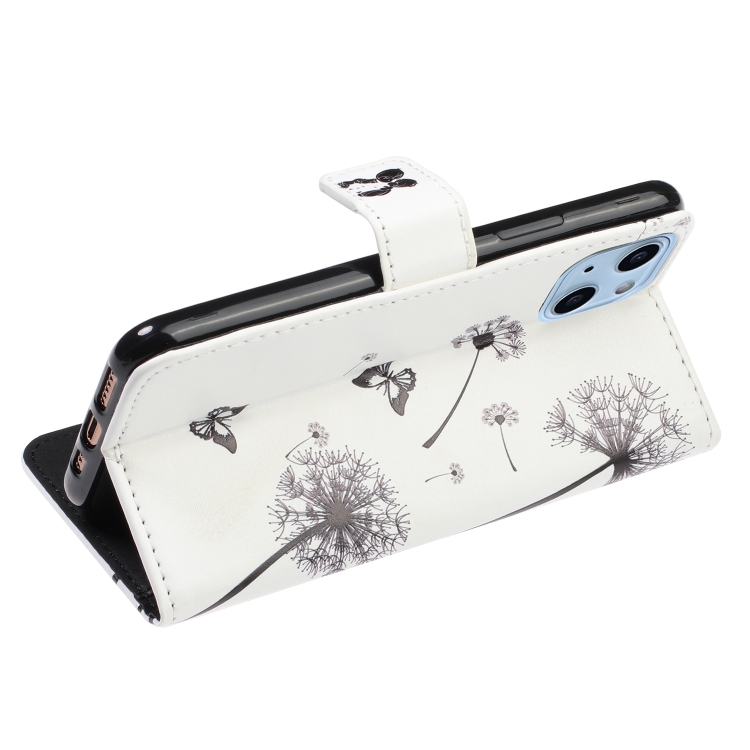 Funda de Teléfono iPhone 13 Cuero Dibujo 3D Relieve al Óleo (Pareja de Diente de León)