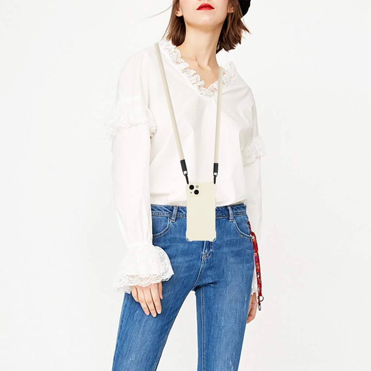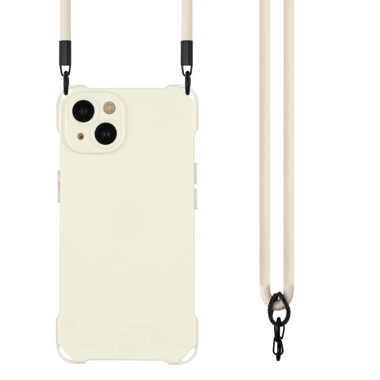 Funda para Teléfono TPU para iPhone 13 a Prueba de Golpes de Cuatro Esquinas con Cordón (Blanco)