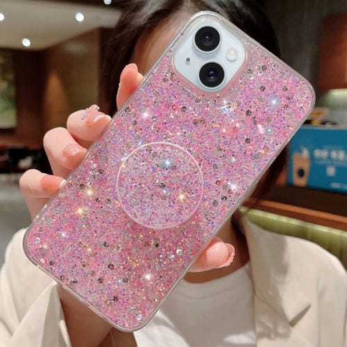 Funda para Teléfono TPU Epoxi iPhone 13 Soporte Redondo Lentejuelas Estrelladas (Rosa)