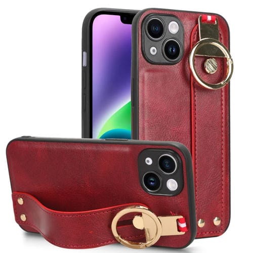 Funda Trasera de Cuero para iPhone 13 con Muñequera (Rojo)