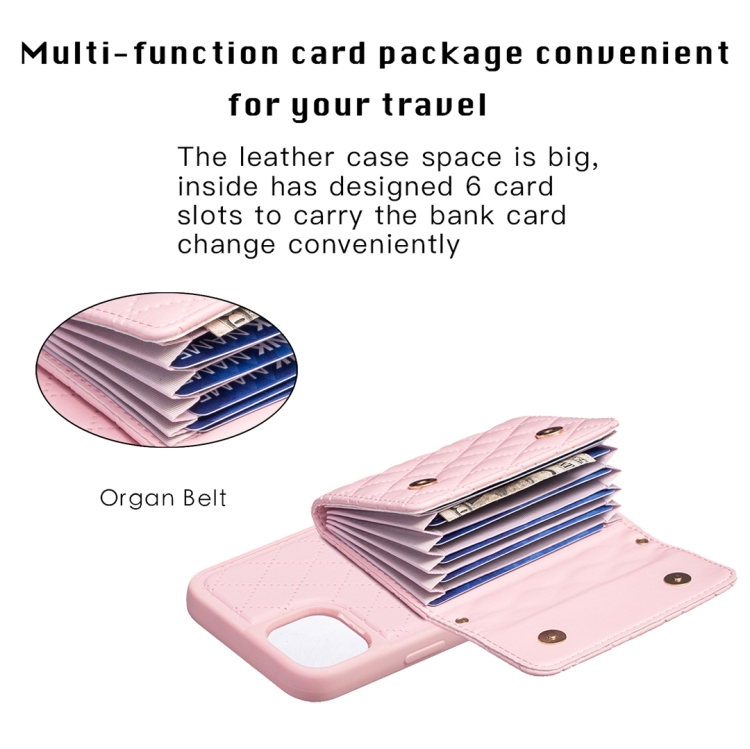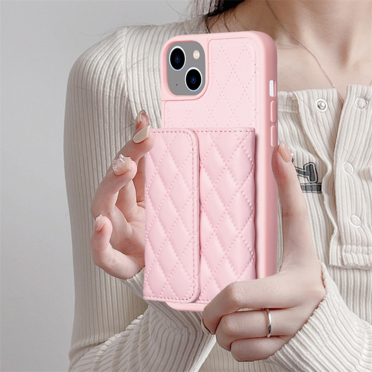 Funda Horizontal Wallet de Cuero Rhombic para iPhone 13 (Rosa)
