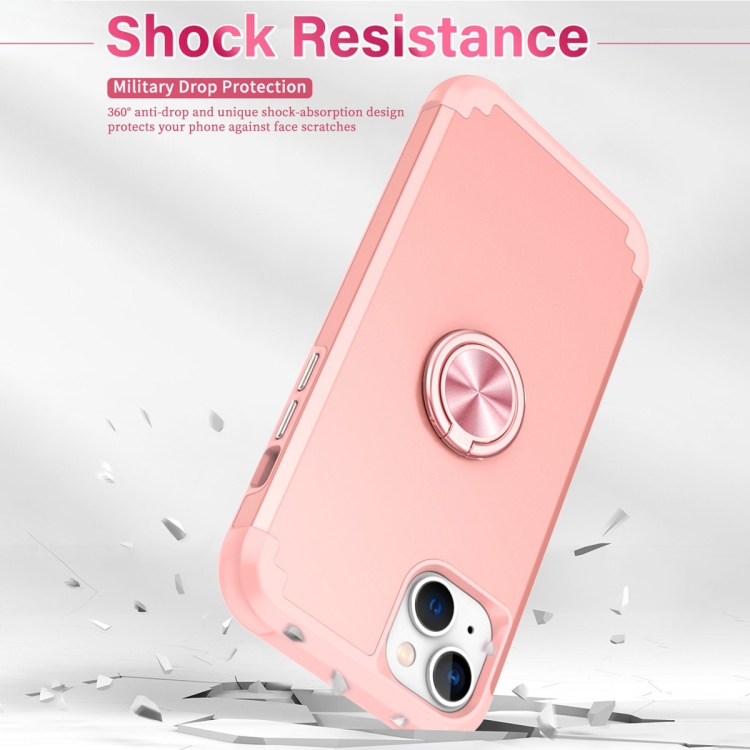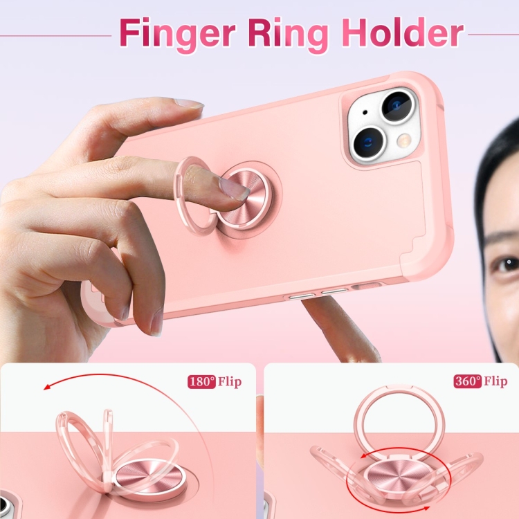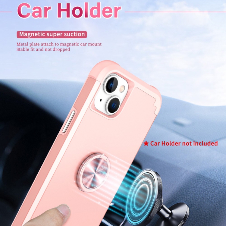 For iPhone 13 L2 Magnetic Phone Case with Rotating Ring Holder (Rose Gold)
