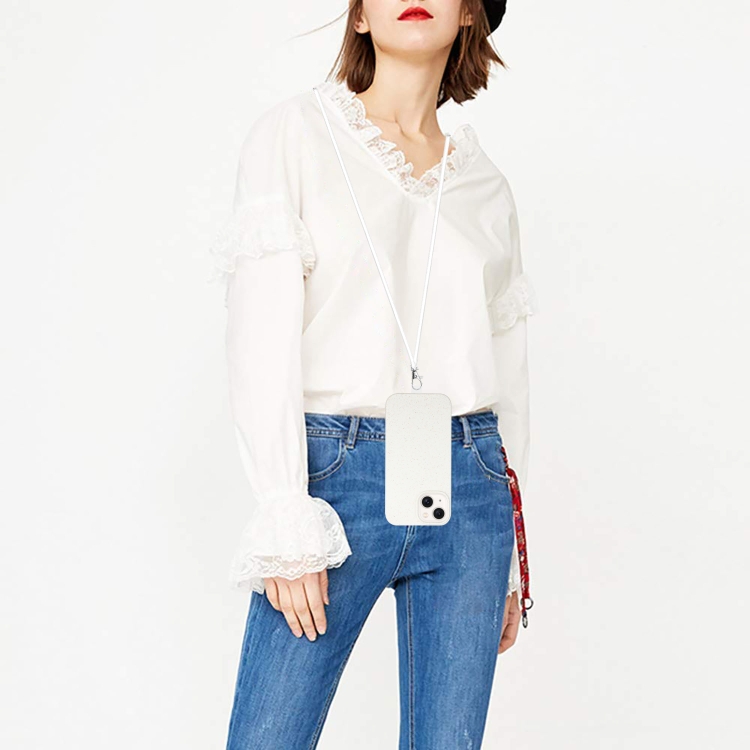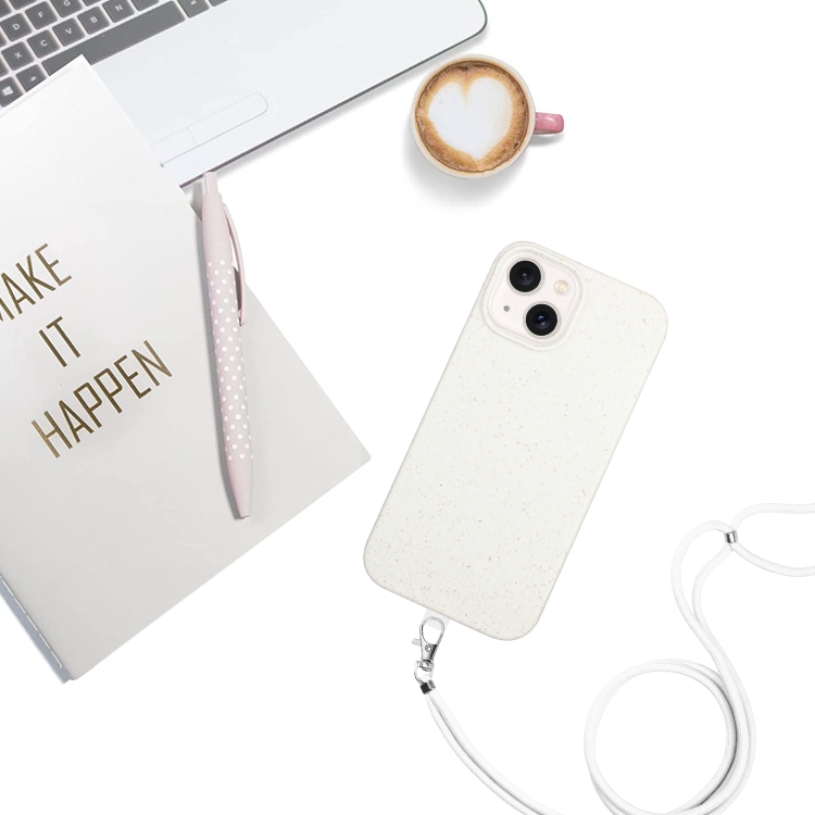 Funda para Teléfono iPhone 13 Material de Paja Magnético Magsafe de Trigo con Cordón (Blanco)