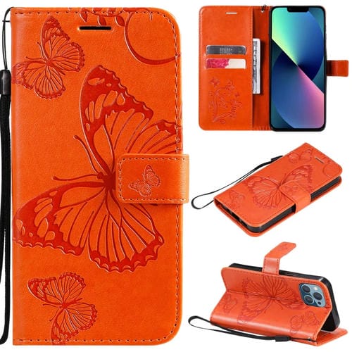 Funda para iPhone 13 Mini Cuero con Tapa Horizontal Soporte Ranura Tarjeta Billetera Cordón (Naranja)