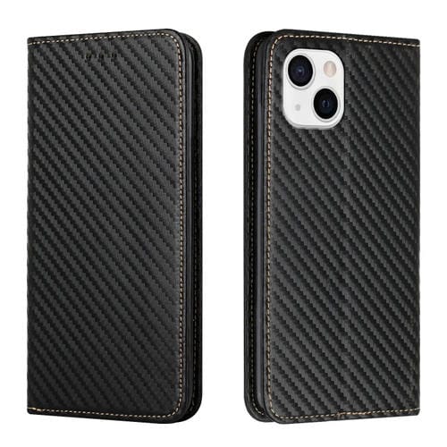 Funda para iPhone 13 Mini Carbon Fiber Texture Flip Holder de Cuero (Negro)