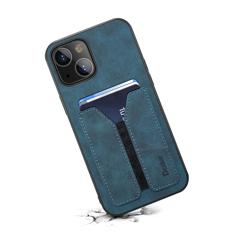 Funda para teléfono Denior iPhone 13 Mini con ranura para tarjeta elástica PU + TPU (Azul)