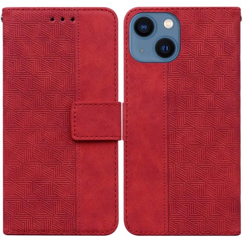 Estuche de teléfono iPhone 13 Mini cuero con relieve geométrico (Rojo)