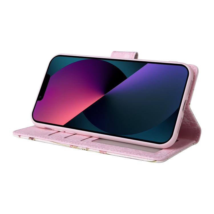Funda de Cuero Rfid para iPhone 13 Mini con Pintura Bronceadora (Mundo de Flores Secas)
