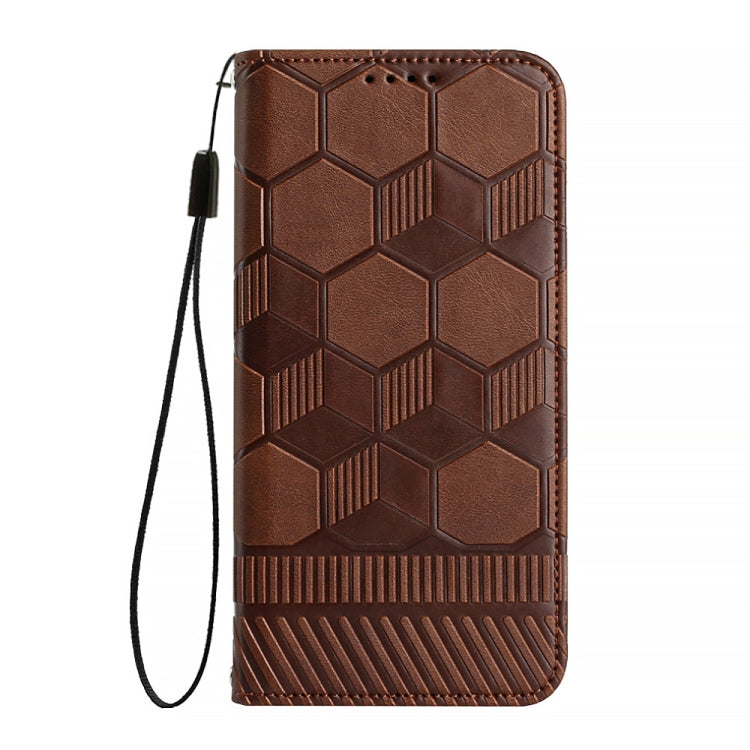 Funda de Teléfono para iPhone 13 Mini con Tapa de Cuero Magnético Textura de Fútbol (Marrón)