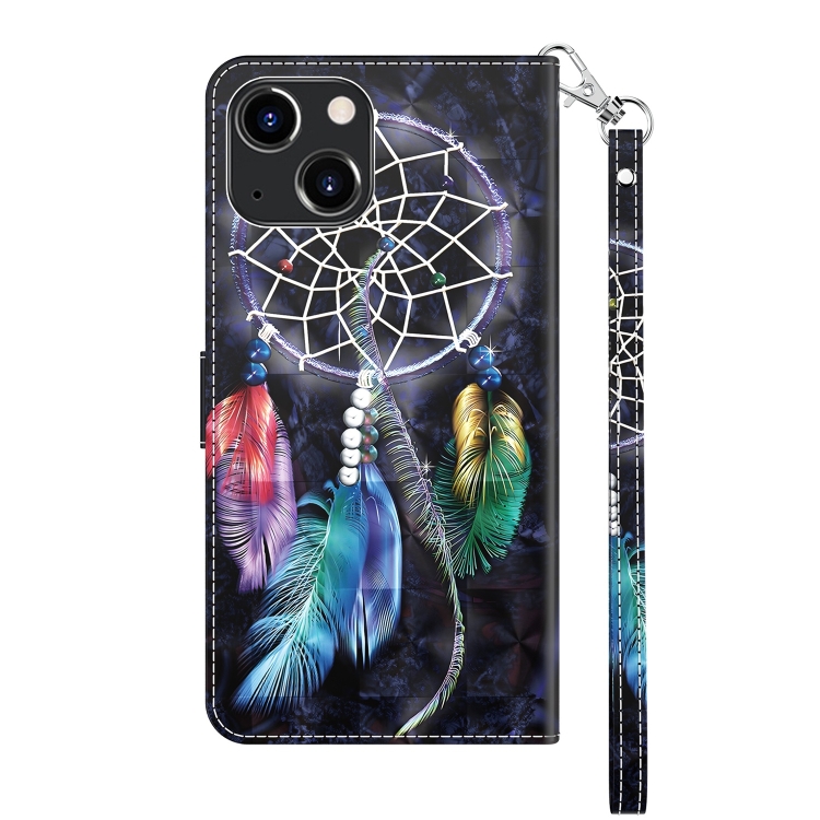 Funda de Teléfono iPhone 13 Mini Cuero Pintado en 3D Atrapasueños (Colorido)