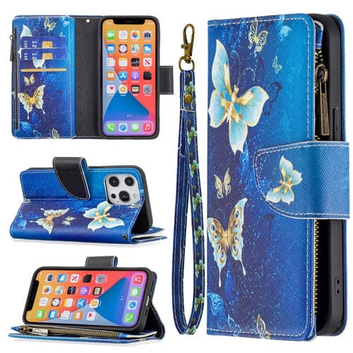 Funda de Cuero para iPhone 13 Mini con Tapa Horizontal, Soporte, Ranuras para Tarjetas y Billetera (Mariposa Dorada)