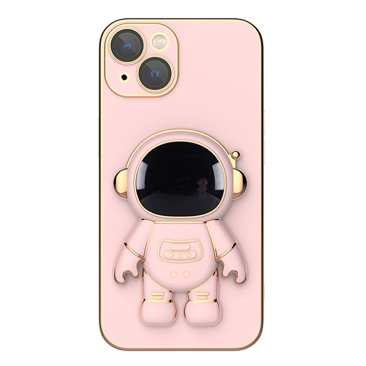 Funda para Teléfono iPhone 13 Mini Plating Astronaut Holder con Película de Lente (Rosa)
