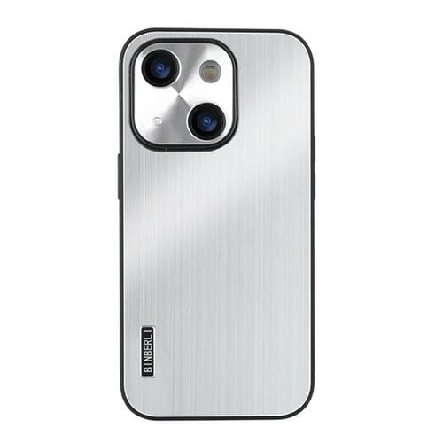 Funda para iPhone 13 PC híbrida a prueba de golpes con aleación de aluminio cepillada (Plata)