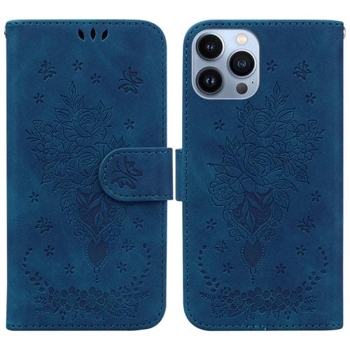 Estuche para Teléfono iPhone 13 Pro Butterfly Rose Cuero en Relieve (Azul)