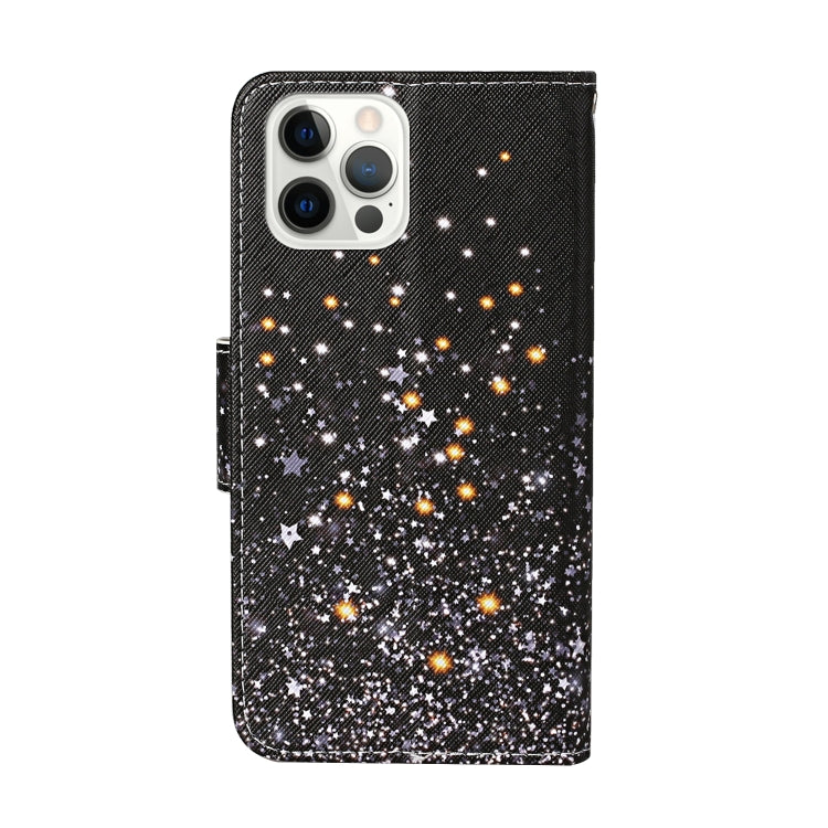 Estuche de Cuero para iPhone 13 Pro con Tapa Patrón Dibujo Coloreado (Estrella de Cinco Puntas)