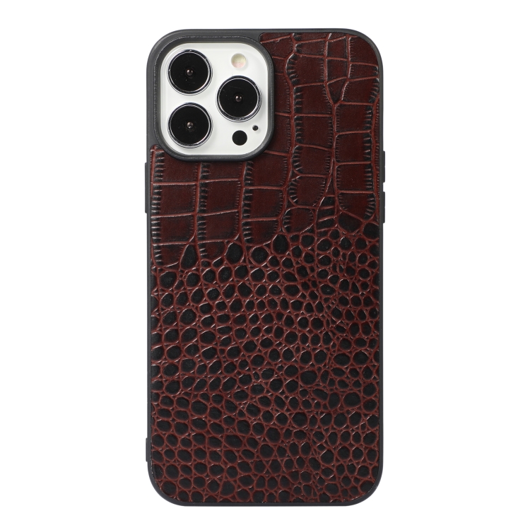 Estuche para iPhone 13 Pro Cuero de Piel de Vaca con Capa Superior de Cocodrilo (Café)