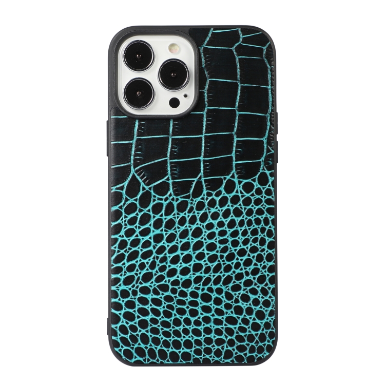 Funda para iPhone 13 Pro Piel de Vaca con Capa Superior de Cocodrilo (Azul Cian)