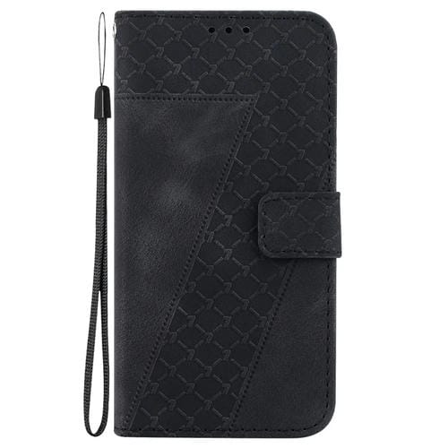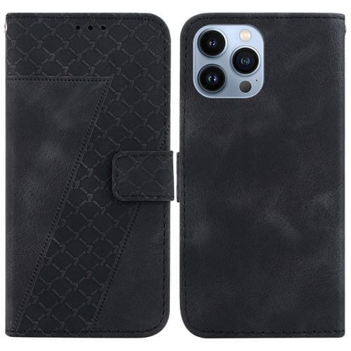 Funda de teléfono iPhone 13 Pro Max 7 En Forma de cuero en relieve (Negro)