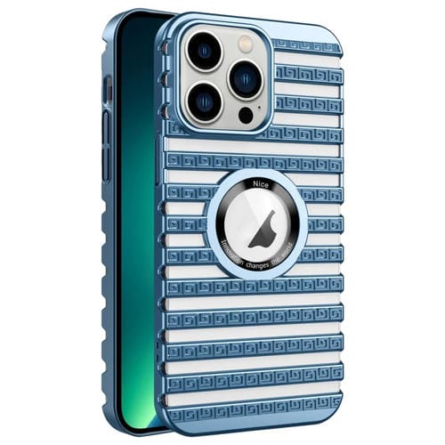 For iPhone 13 Pro Max Electroplated Hollow Phone Case with Cooling Ladder (Blue)