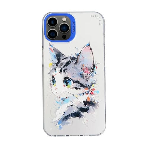 Funda para teléfono iPhone 13 Pro Max Cartoon Animal Graffiti PC y TPU (Gato de Cara Blanca)