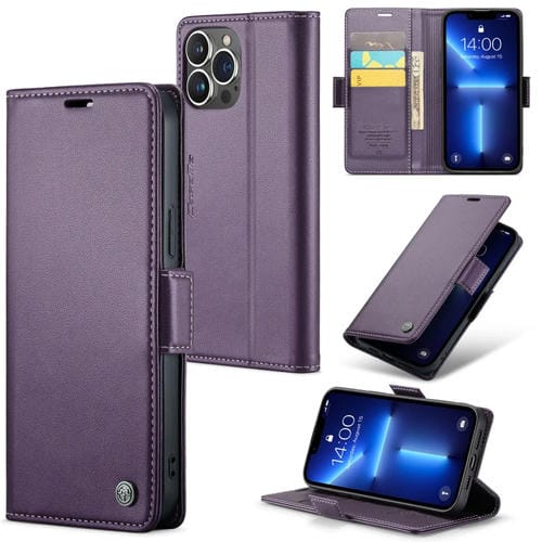 Funda para iPhone 13 Pro Max Caseme 023 Mariposa Hebilla Litchi Textura Rfid Antirrobo (Púrpura Nacarado)