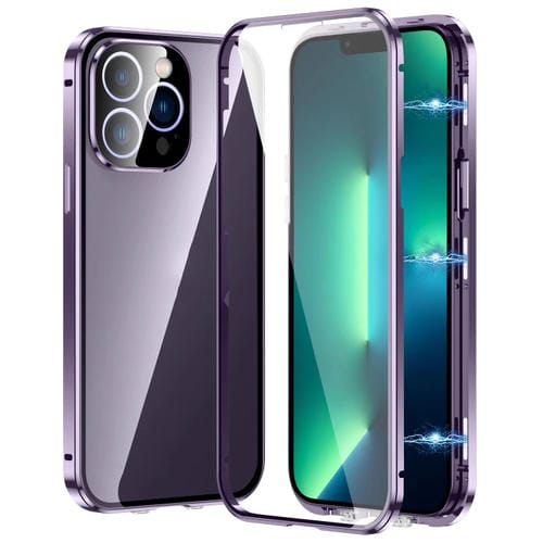 For iPhone 13 Pro Max Magnetic Phone Case HD Tempered Glass Double Buckle Case (Purple)
