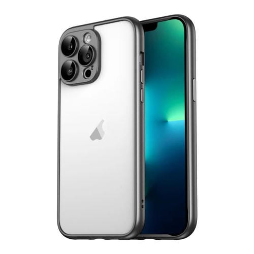 Funda para iPhone 13 Pro Max Macaron PC Marco de Borde con Película de Vidrio para Lente (Negro)