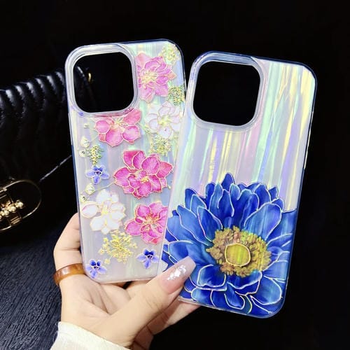 Película de Color Galvanizada TPU + Funda PC para iPhone 13 Pro Max (Flores Moradas)