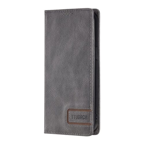 Funda de teléfono Ttudrch para iPhone 13 Pro Max Cuero Magnético con Textura Retro (Gris)