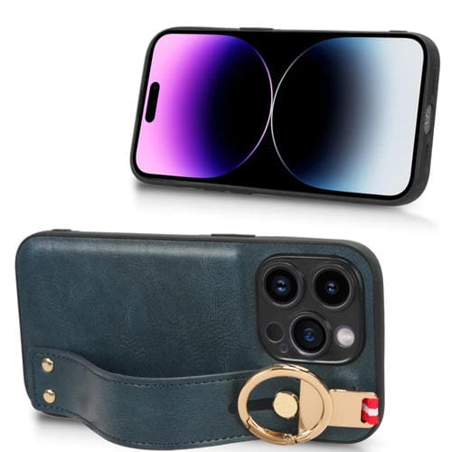 Funda para iPhone 13 Pro Max Wristband Leather Back Phone Case (Azul)