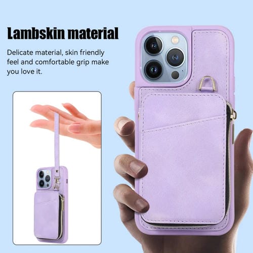 Funda para Teléfono iPhone 13 Pro Max Zipper Card Bag Contraportada (Púrpura)
