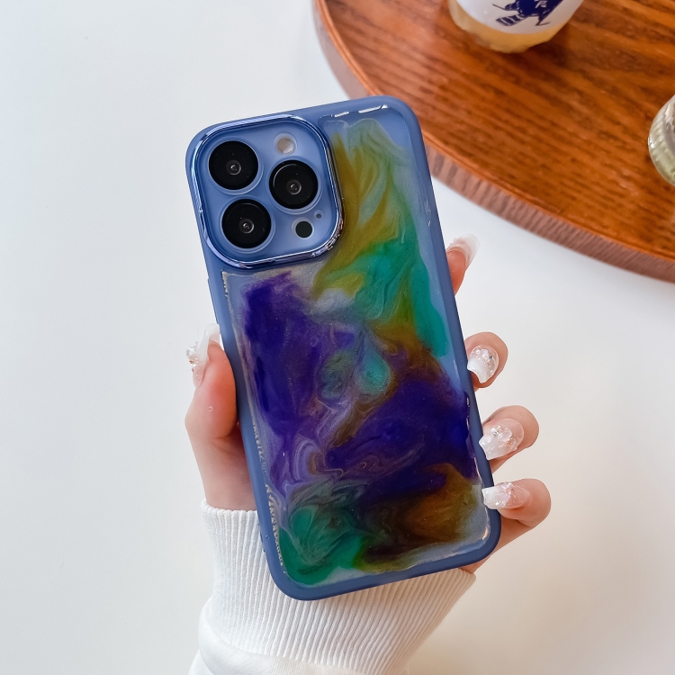 Funda para iPhone 13 Pro Pintura al Óleo Galvanoplastia TPU (Azul)