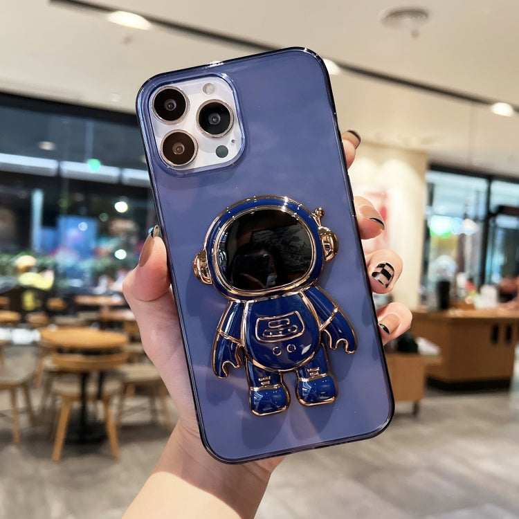 For iPhone 13 Pro Plating Astronaut Holder TPU Phone Case (Dark Blue)