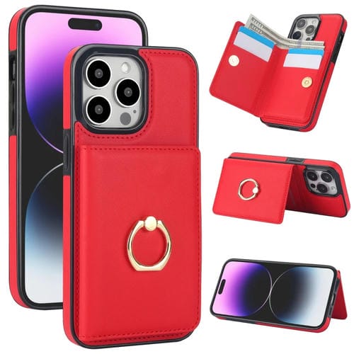 Estuche para Teléfono iPhone 13 Pro RFID Tarjeta Antirrobo con Soporte para Anillo (Rojo)
