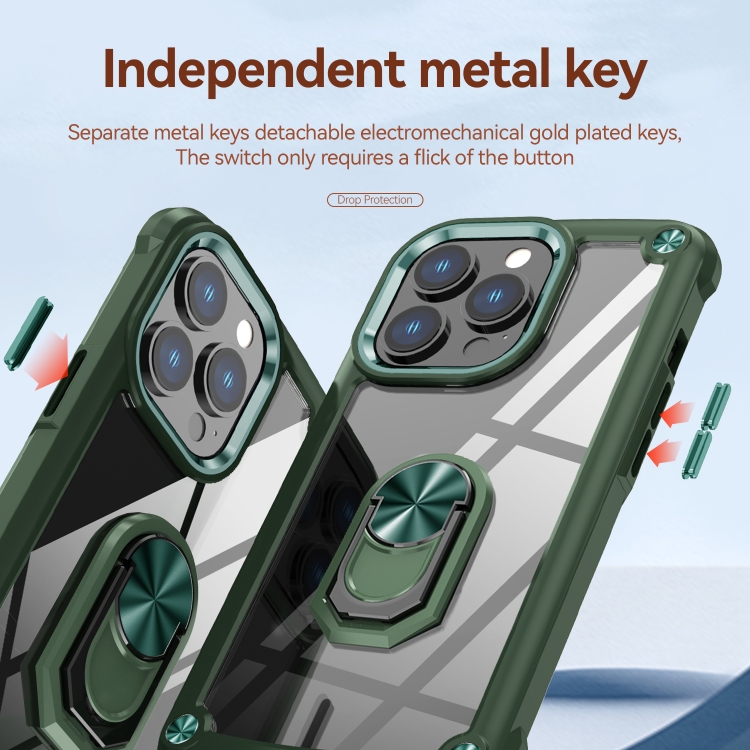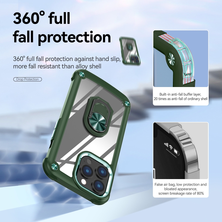 Estuche para Teléfono iPhone 13 Pro TPU + PC con Protección de Lente y Soporte para Anillo (Verde)