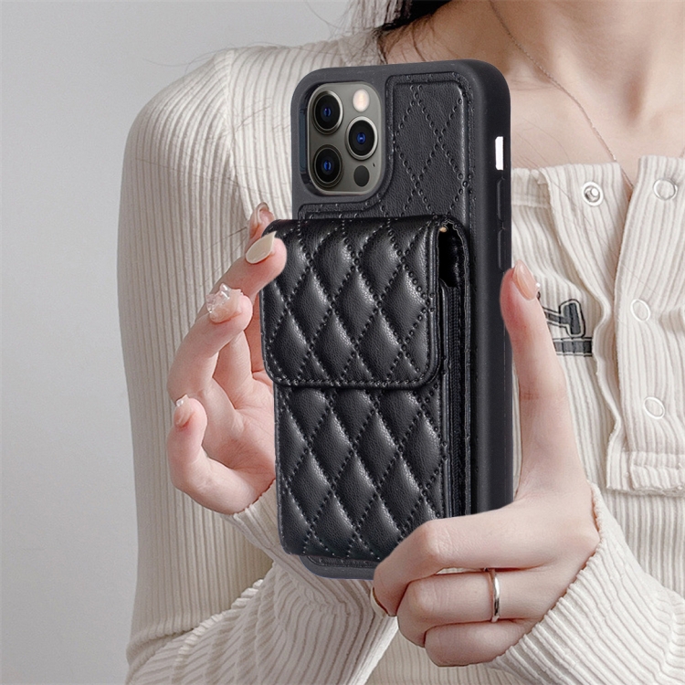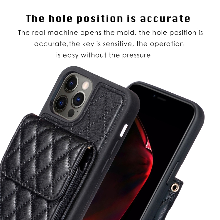 Funda para iPhone 13 Pro Vertical Wallet Rhombic Leather Phone Case (Negro)