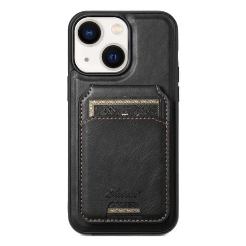 For iPhone 13 Suteni H15 MagSafe Oil Eax Detachable Wallet Leather Phone Case (Black)