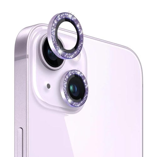 Protector de Lente de Cámara Northjo iPhone 14/14 Plus Vidrio Templado Bling Glitter Metal Ring (Púrpura)