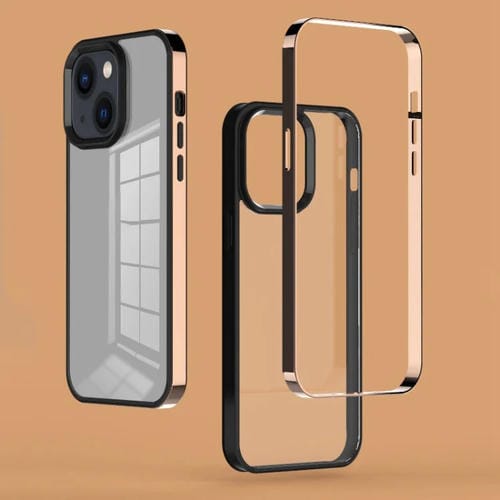 Caja de teléfono 3 en 1 para iPhone 14 con marco galvanizado (Dorado)