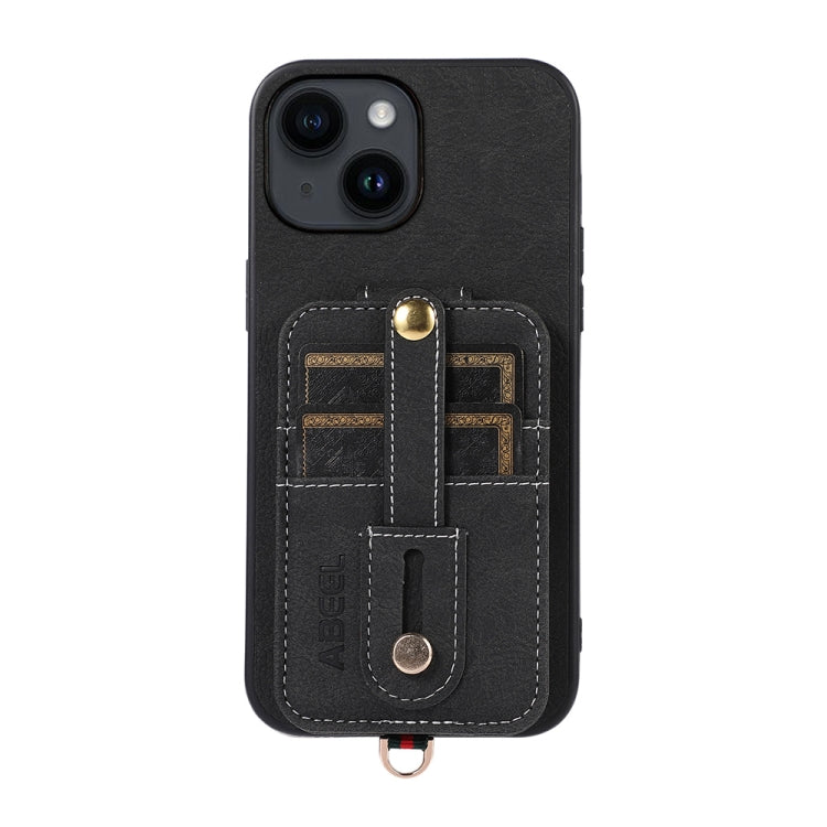 Funda para iPhone 14 Abeel Litchi Texture Card Bag PU Phone Case (Negro)